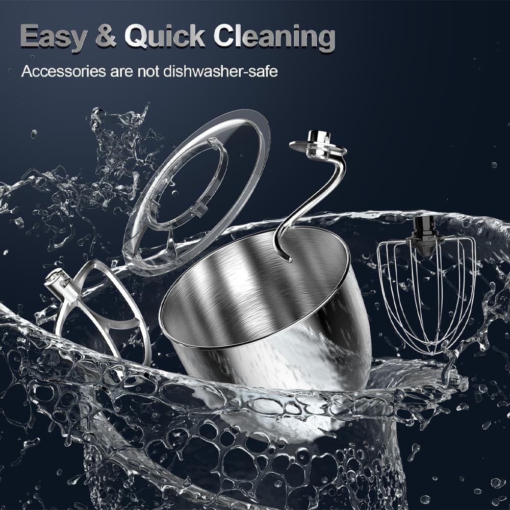 Stainless Steel Bowl: The durable SUS304 stainless steel mixing bowl is designed for hygiene and easy cleaning, while its large capacity accommodates big batches of ingredients.